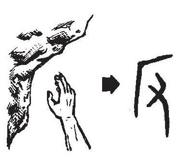 反 甲骨文字形 “反”的甲骨文字形 “反”字典中的甲骨文字形 “反”《字源》中的字形演变 字理阐发 甲骨文像一只手正向着崖边攀登(见下图),是“攀”字的本字。后“反”加手旁为意符作“扳”“扳”与“攀”同源,也可能是时代不同的异体字。后来“反”本义不存,假借为“相反”“反叛”等意思。又引申为“返回”,这种意义又写做“返”。 字理教学 “反”的甲骨字形为“攀”之初文,与现代汉语中常用的“反面”意不太相关,故此处不建议使用甲骨文进行教学。 字与文化 动作或行为翻转过来,与原来的方向、趋势相颠倒叫“反”。违背奴隶社会、封建社会下必须服从上、臣必须服从君的规定,以下叛上也叫“反”这就是造反的“反”了。