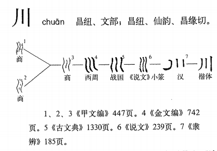 川 甲骨文字形 “川”的甲骨文字形 “川”字典中的甲骨文字形 “川”龟甲兽骨上的形态 “川”《字源》中的字形演变 字理阐发 甲骨文为象形字,两边为岸,中间为流水,象两岸中间有流水。 字理教学 与此课汉字共同教学。 字与文化 “川”是河流的专名,“水”是河流的类名。河流流在平地上的叫“川”,山间的流水则叫“溪”,也写作“谿”。翻开地图,从河流得名的地名,陕甘黄土高原地带到河南多以“川”命名,如“延川”“宜川”“洛川”“泾川”“伊川”“淅川”“潢川”;山东河北到河南的低地,多以“水”命名,如“沂水”“泗水”“明水”“徐水”“衡水”“商水”;地处古代楚国、吴越区域内的地方则多以“溪”命名,如“雷溪”“浣溪”“雲溪”“罗衣溪”“洞庭溪”“辰溪”“濉溪”“紫溪”“杨溪”“兹溪”“富溪”。这显然和环境、习惯及文化的渊源有关系。