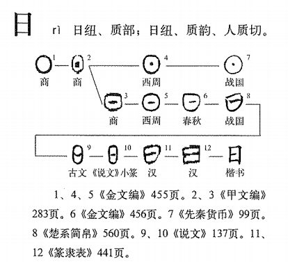 象形字。初文像太阳之形,后由于书写不便,笔画由圆转变为方折,象形之意渐失。“日”的本义就是太阳。
