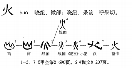 火 甲骨文字形 “火”的甲骨文字形 “火”字典中的甲骨文字形 “火”龟甲兽骨上的形态 “火”《字源》中的字形演变 字理阐发 甲骨文为象形字,象物体燃烧时发出的光、焰之形,本义是火、火焰。 字理教学 与此课汉字共同教学。 字与文化 “火”即“大火”在甲骨文中有星宿的用法,被看作是心宿,很早就引起古人的注意,因其颜色火红而得名,是心宿在早期最流行的称呼。每年夏历六月出现于正南方,七月后逐渐偏西下沉,故称“流火”。故“七月流火”的意思是在农历七月天气转凉的时节可以看见大火星从西方落下去。